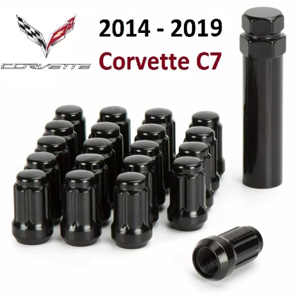 ECCP 2014-2019 Corvette C7 Gloss Black 6 Spline Lug Nuts