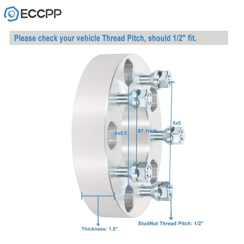 - 🚘【WHEEL SPACERS 1.5 INCH SPECIFICATIONS】Thickness 38mm or 1.5 inches Centerbore 87.1mm Vehicle Bolt Pattern 5x139.7 or 5x5.5 Wheel Bolt Pattern 5x127 or 5x5 StudNut Thread 1/2"x20 1/2" UNF