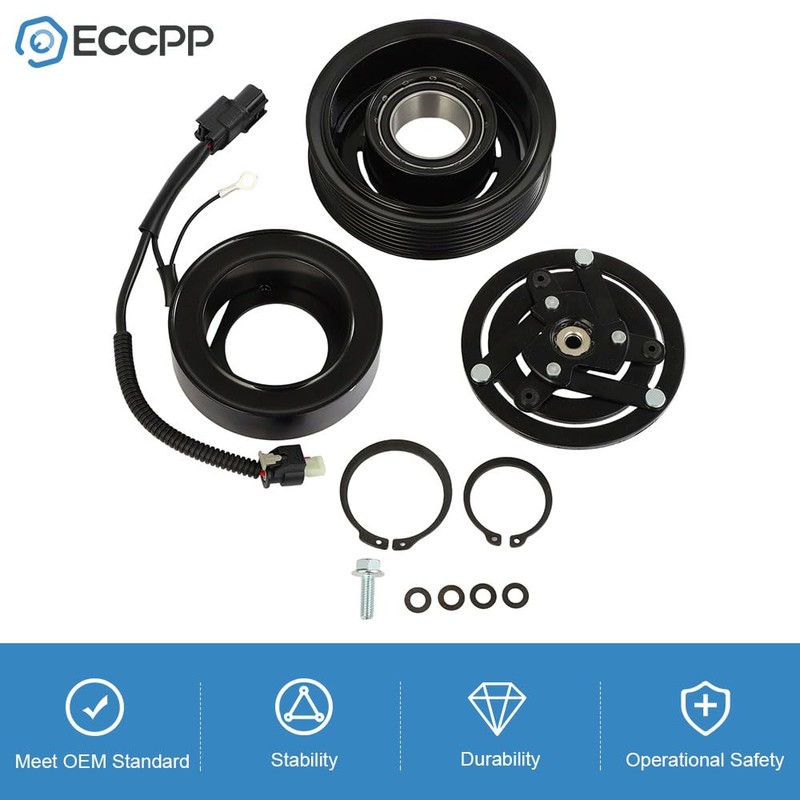 • BEST FEATURE:The three main parts of the ac compressor clutch assembly are the coil magnet, the pulley, and the clutch plate. ECCPP A/C compressor clutch coil assembly kit are designed and manufactured to meet or exceed the standards of the original equipment components we are replacing