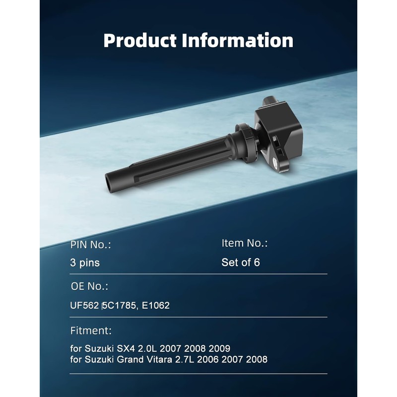 ECCPP ECCPP ignition coil coils UF562 PACK OF 6,for Suzuki SX4 2.0L 2007 2008 2009,for Suzuki Grand Vitara 2.7L 2006 2007 2008 UF562 ?5C1785 E1062