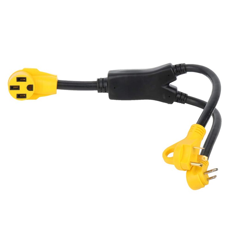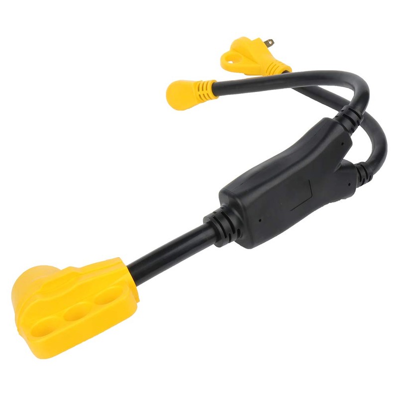 ECCPP RV Y-Split Power Cord Adapter, 50 amp Female to (1) 30 amp - (1) 15 amp Male Heavy Duty RV Power Cord Plug Adapter with Grip Handle