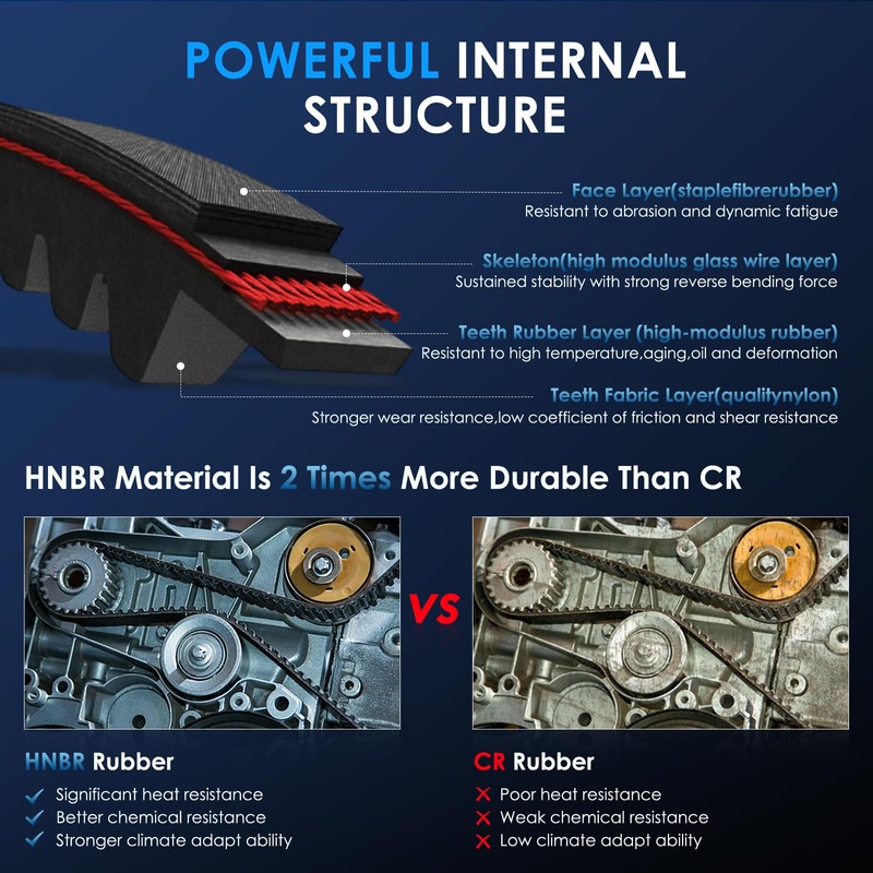 • MATERIAL - High performance material can reduce the crack caused by belt deformation and extend the service life