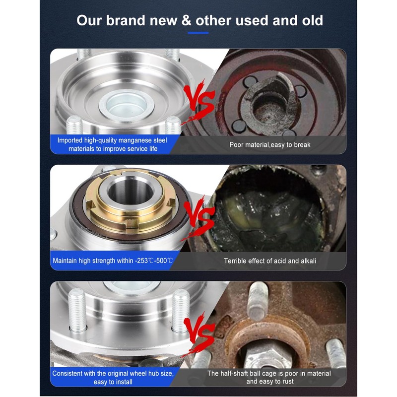 - Complete Wheel Hub and Bearing Assembly Solution:Our wheel hub and bearing assembly offers a complete solution for your vehicle's needs. It combines both components into one easy installation, saving you time and effort