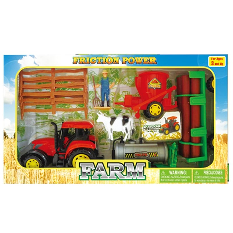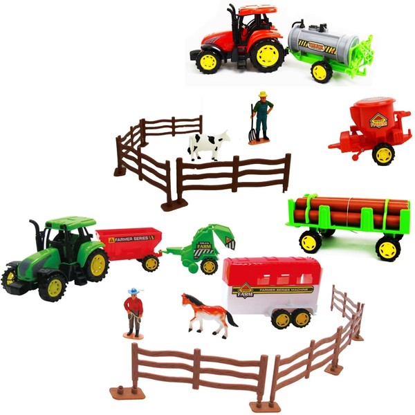 - Farm Toys Playset: The farm toy set includes 1 tractor with 3 trailers, 1 farm cow, 1 farmer figures, 1 fences your children can spend long hours exploring and building the farm animals world.