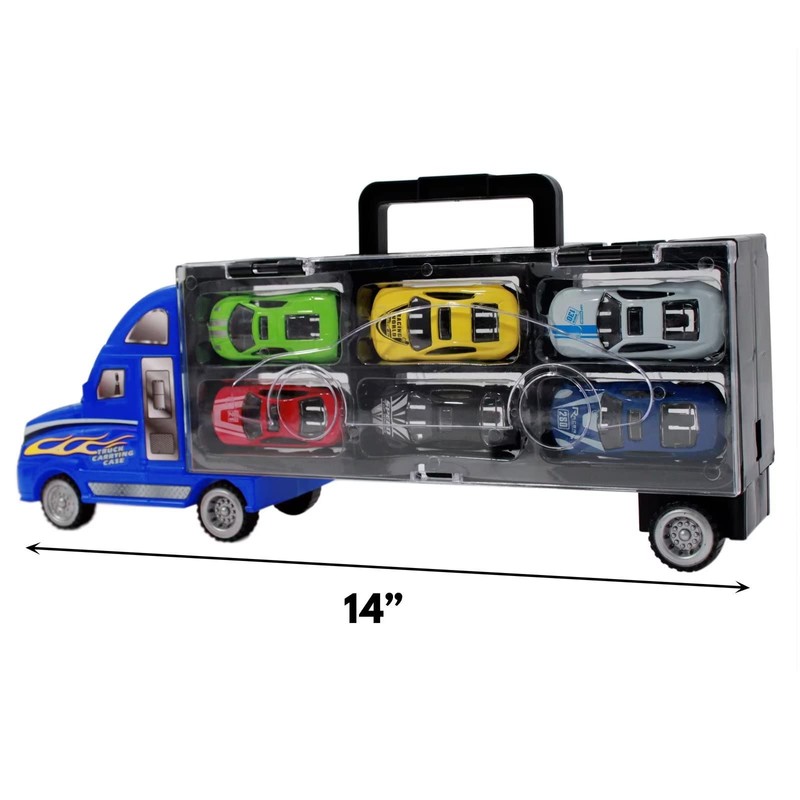 ECCRIS Friction Powered Transport Carrier Truck Toy Car with 6 Die Cast Vehicles Racing Car