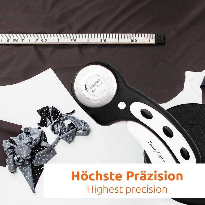 - Precise cut – due to the high-quality 45 mm SKS7 steel blades, you can even cut several layers of fabric