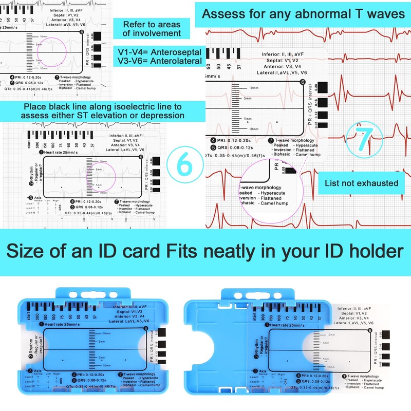 - ECG 7 Step Ruler: Designed with the scientific 7-step ECG interpretation method, it provides clear, intuitive reference points for those hard to remember key points with a step-by-step follow-through process! Helps to quickly analyze ECG.