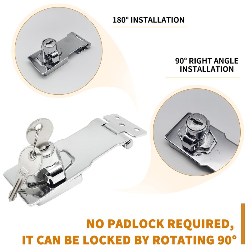 - 【Premium Material】The keyed hasp locks are made of stainless steel with chrome finish which is sturdy,durable,rust-proof,wear-resistant,corrosion-proof.The base and lock are further thickened,It can make your private space or items more secure.