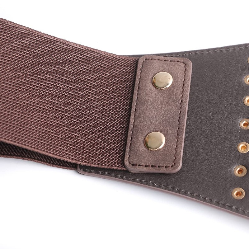ECHAIN Vintage Classic Wide Belt Elastic Leather Waist Belt, Coffee, Medium
