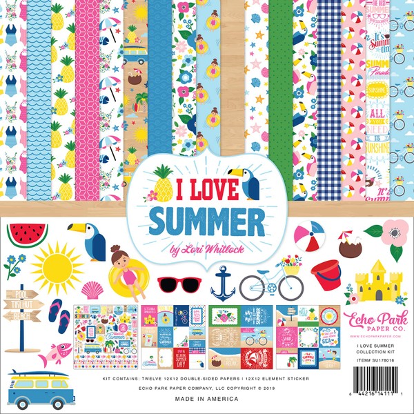 Echo Park Paper Company I Love Summer Collection Kit paper, pink, teal, green, yellow, blue, red 12-x-12-Inch