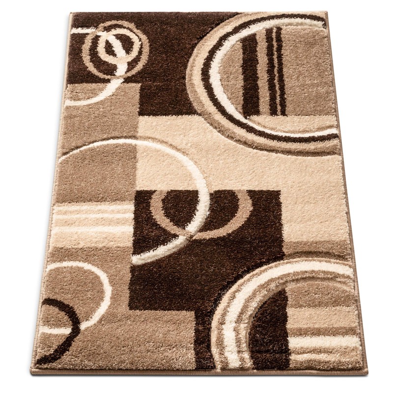Echo Shapes Circles Ivory Beige Brown Modern Geometric Comfy Casual Hand Carved 2x3 (2' x 3') Area Rug Easy to Clean Stain Fade Resistant Abstract Contemporary Thick Soft Plush Living Dining Room Rug