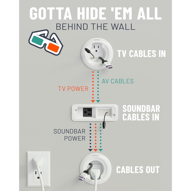 ECHOGEAR in Wall Cable Management Kit for TV & Soundbar - Cord Concealer & Power Kit - Powers Devices & Hides All Cables - Comes with Circle Saw Drilling Attachment & Drywall Hand Saw