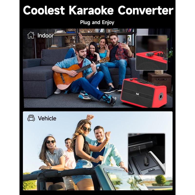 [Make Your Wired Speaker Become Your Personal Stage]--Having a good sound quality speaker doesn’t know how to use it? How about connecting it with ECHOMUSSY mini karaoke machine to play? Just need to plug in the device with the Aux jack on the speaker, turn on the device's power, and choose the mode you want, then start the party right away!