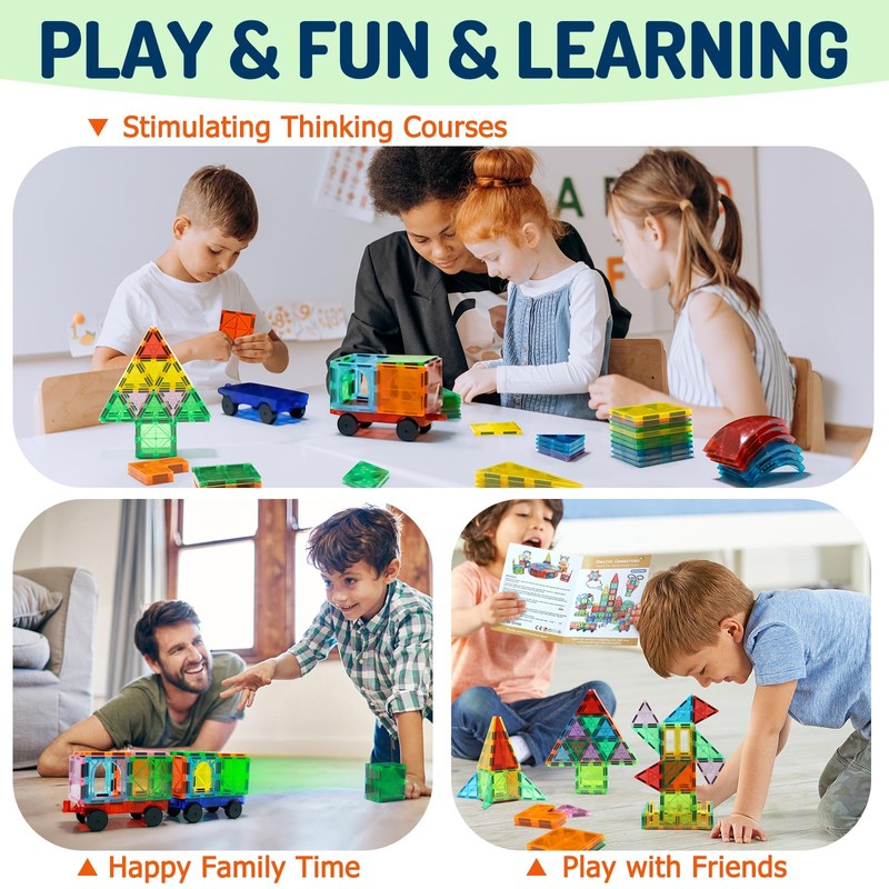 • Safe & Durable Kids Toys --- Our magnetic tiles toys are "CPSIA" and "ASTM" certified and do not contain any harmful gases. Made of safe and durable ABS plastic with advanced ultrasonic welding technology. The smooth surface and rounded edges allow children to play safely without causing scratches or damage. This is a perfect set of toys for 3 4 5 6 7 year old