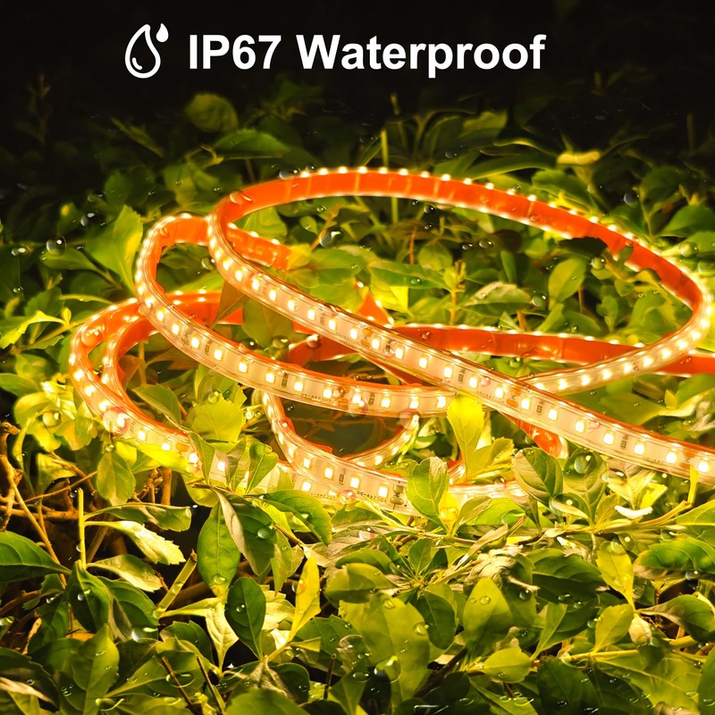 - Waterproof Outdoor LED Strip Lights: Waterproof IP65 level allows it to beautify both indoor and outdoor lighting scenes. The outdoor led strip lights waterproof can be installed outdoor and withstand splashes or rainfall and prevent bask in. Suitable for both indoor and outdoor use. (LED controller and power plug are not waterproof, please take waterproof measures.)