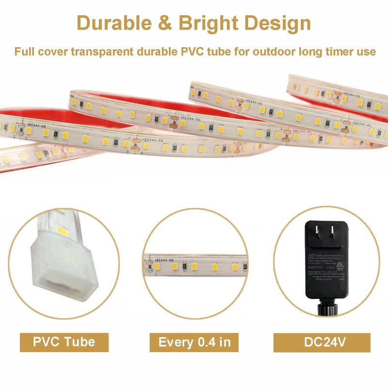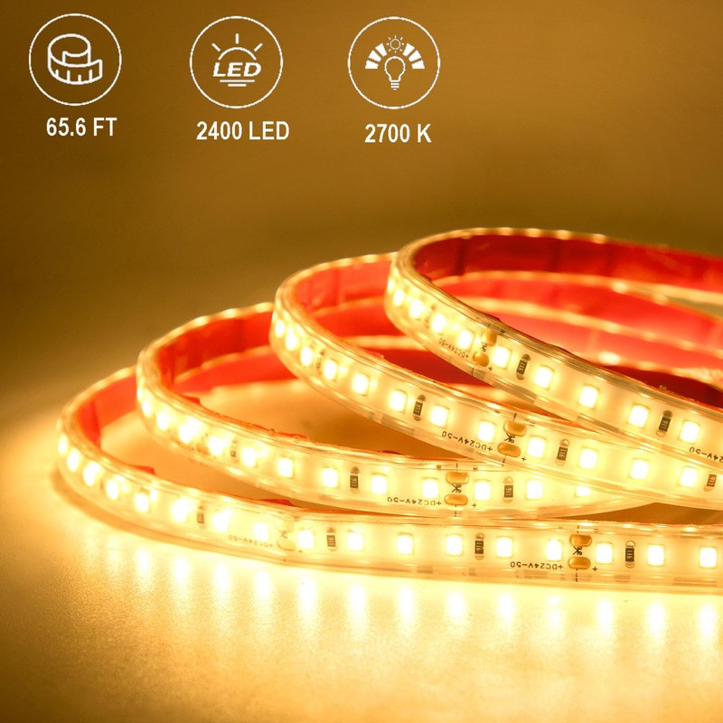 - Extra Long LED Strip Lights: Warm white LED light strips consists of 2400 pieces super bright and high-quality lights bead. You'll enjoy incredibly bright lighting and improved color quality. The ultra-long continuous length of 65.6 feet/20 meters can satisfy you to decorate large spaces