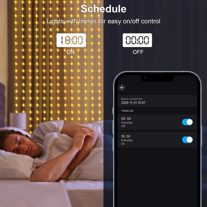 - App Control: Easily control the Curtain lights via the app, offering DIY settings and dynamic lighting effects. Change colors and modes anytime to create a unique, personalized lighting experience