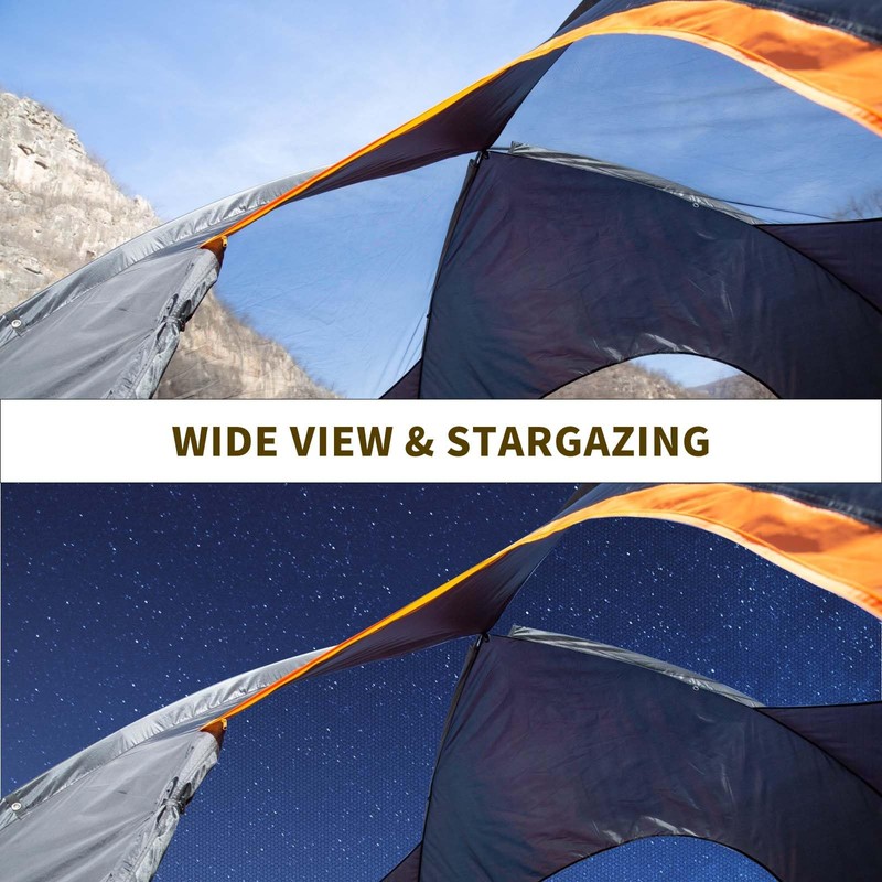 EchoSmile 10-12 Person Camping Tent – Waterproof Windproof Tent with Rainfly Easy Set up, Black & Orange