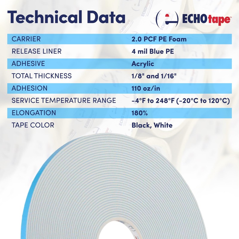 • ABOUT ECHOTAPE – Founded in 1973, ECHOtape is family owned and operated. For more than 50 years, we’ve been providing high-performance tape solutions to our customers, with high-touch, personalized service. We’re proud of our industry-wide reputation as tape experts who provide the highest level of customer care.