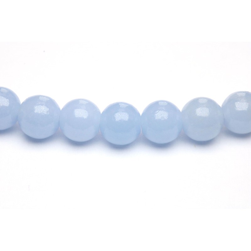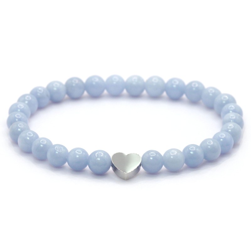 Echtes Blauer Angelit Edelstein Armband mit 6mm Perlen und Edelstahlherz - verschiedene Längen - Heilstein Schutzstein Talisman Glücksbringer Geschenk (Bl. Angelit, 16CM)