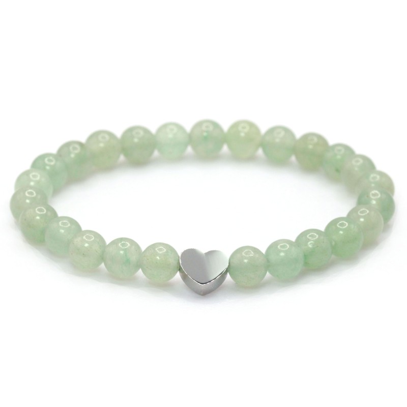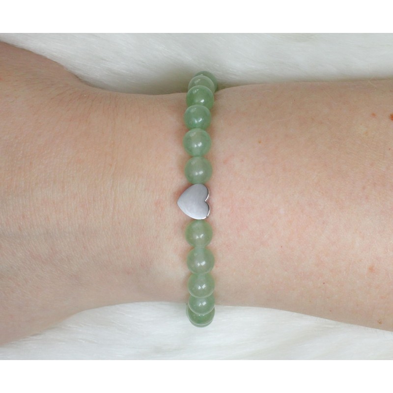 Echtes Grüner Aventurin Edelstein Armband mit 6mm Perlen und Edelstahlherz - verschiedene Längen - Heilstein Schutzstein Talisman Glücksbringer Geschenk (Gr. Avent., 20CM)