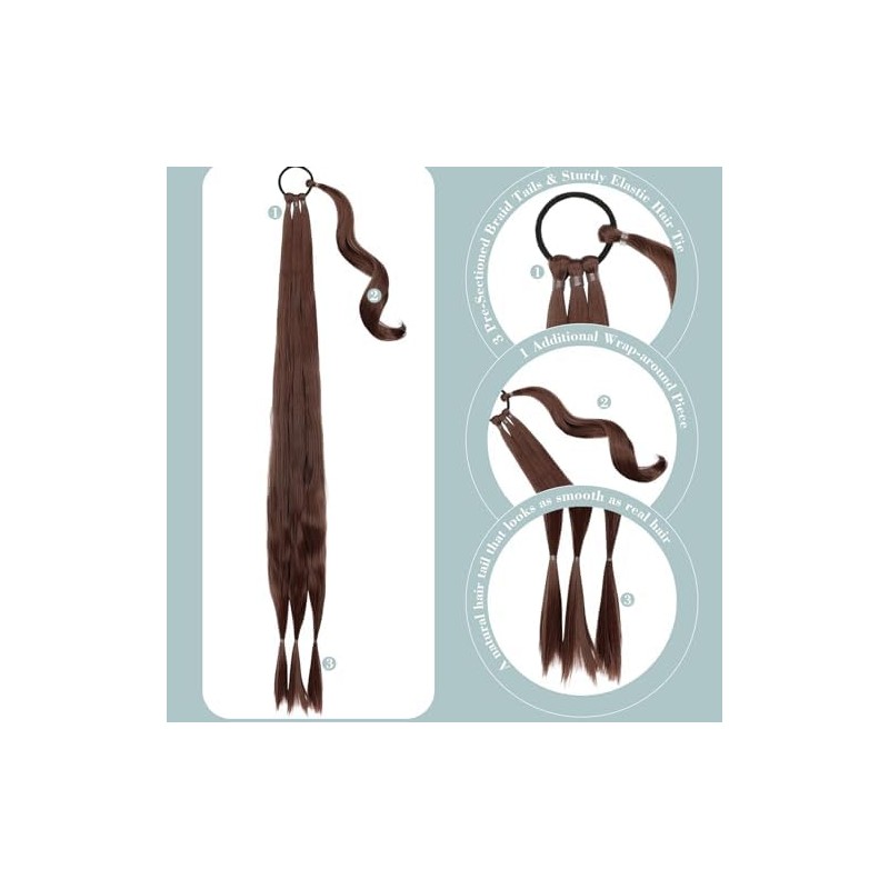 - 👩🏽【Diy verschiedene frisuren】Mit ponytail extension zopf können sie ihre frisur frei nach ihrem eigenen stil ändern! sie erhalten einen geflochtenen zopf, der aus drei langen geraden strängen und einem kurzen strang besteht. Sie können den geflochtenen zopf auseinandernehmen und viele verschiedene frisuren basteln: pferdeschwanz, französischer fischschwanz, hoher dut