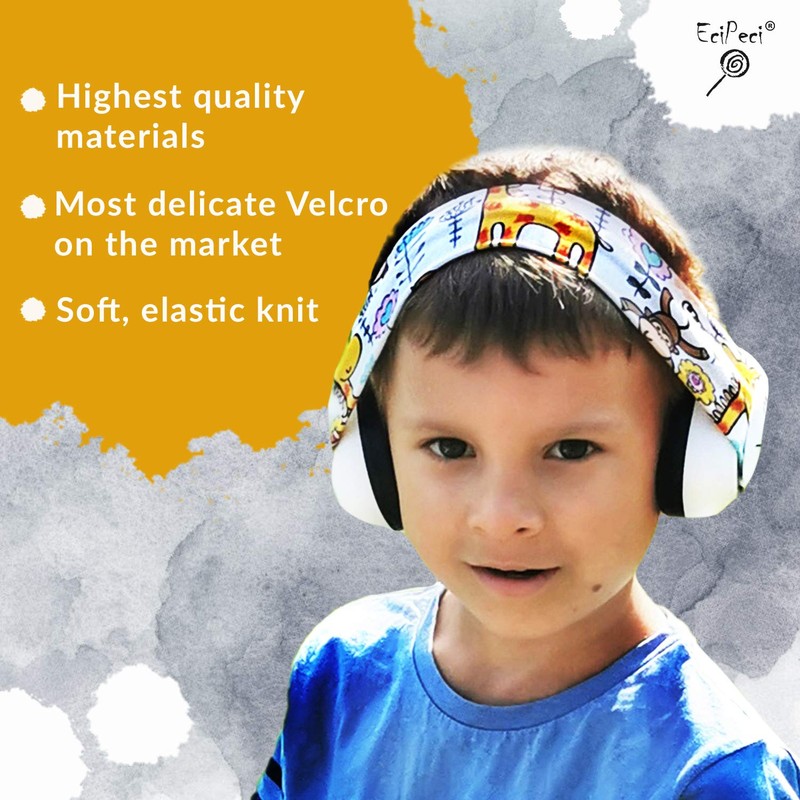 - Comfortable to wear thanks to flexible materials: our ear protectors are characterised by optimal adaptability, thanks to the elastic band made of loop knit fabric and elastane. This guarantees the highest level of comfort and maximum safety for your children
