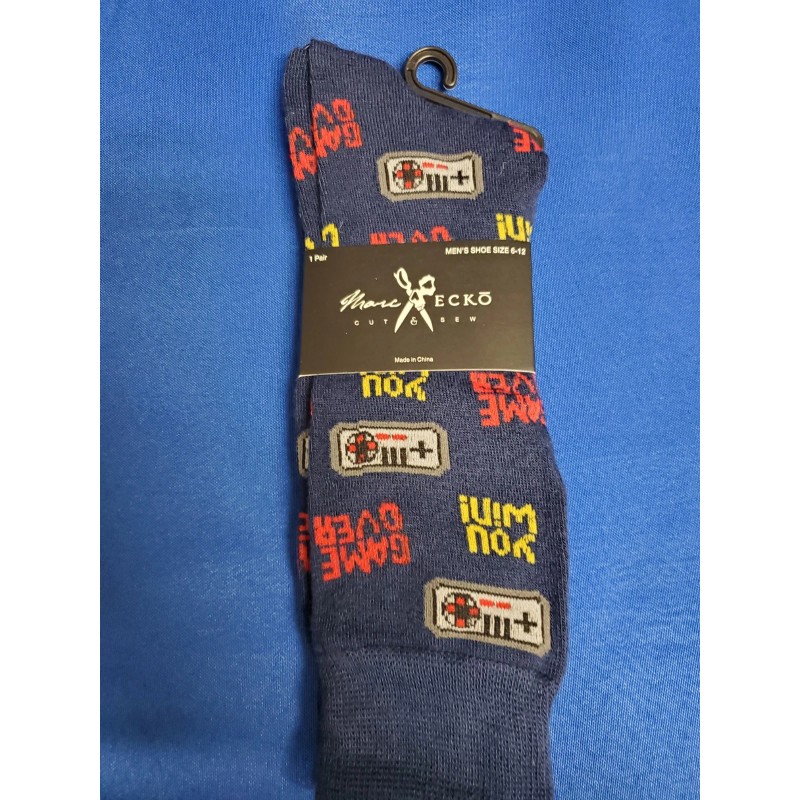 Step up your sock game with these Marc Ecko Game Over novelty socks. These blue socks feature an eye-catching design that will make your feet stand out. Perfect for men, these socks come in one size and are great for everyday wear.