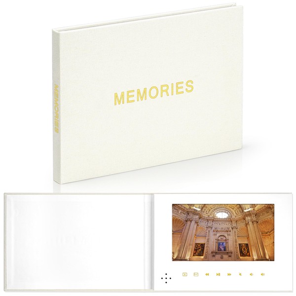 EclatView books (MEMORIES-Beige) Video Book - Luxury Linen Bound Album with 7” Display, 4GB Memory, Rechargeable Battery. Cherish Every Moment - JTRF