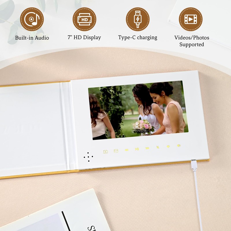 - Timeless Elegance: Wrapped in luxurious linen and adorned with elegant foil titles, our Video Book is more than a device—it's a timeless keepsake to celebrate life's most precious moments.