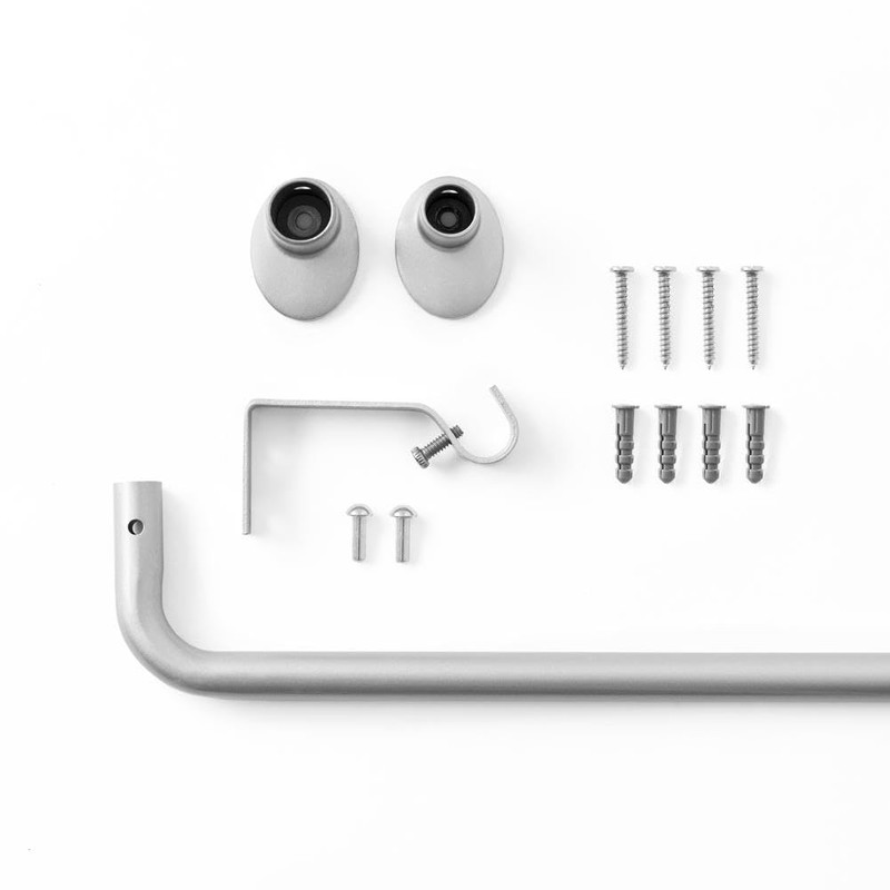 The Eclipse 5/8" Wrap Around Room Darkening Curtain Rod is designed to wrap around your window frame to block light, save energy, and reduce noise. The silver finished steel telescoping rod adjusts from 48 inches to 86 inches in length to fit a variety of window sizes and projects 3. 125 inches from the wall. New and improved stronger metal brackets install quickly and easily while concealing the mounting screws and hardware. Use in your kitchen, bedroom, dining room, or living room to hang light to medium weight curtains. It is ideal for hanging curtains with grommets, back tabs, or pockets, but can also be used with tab tops or clip rings. Pair with Eclipse Light Filtering, Room Darkening, or Black Out curtain panels (sold separately) to maximize light blocking, energy saving, and noise reduction features. Room Darkening Rod Set Includes: one telescoping steel curtain rod, two metal mounting brackets, one center support, screws, drywall anchors, and installation instructions.