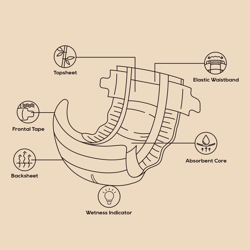 - Kind to Our Earth: Reduces plastic waste by 30% compared to regular disposable diapers by using 100% bamboo viscose topsheet & backsheet.