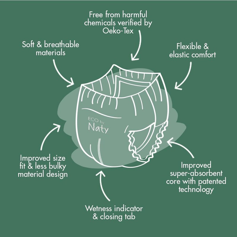 - PLANT BASED ultrasoft Pull up Pants. Eco by Naty provides the perfect Eco friendly underwear like diapering pants with cool nature inspired designs.