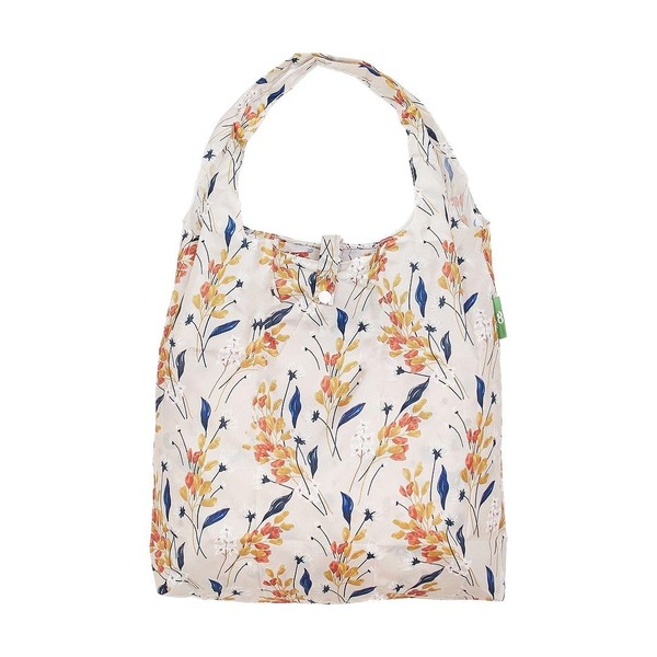 ECO CHIC Lightweight Foldable Reusable Shopping Bag Water Resistant Tote Bag (Flowers Beige)