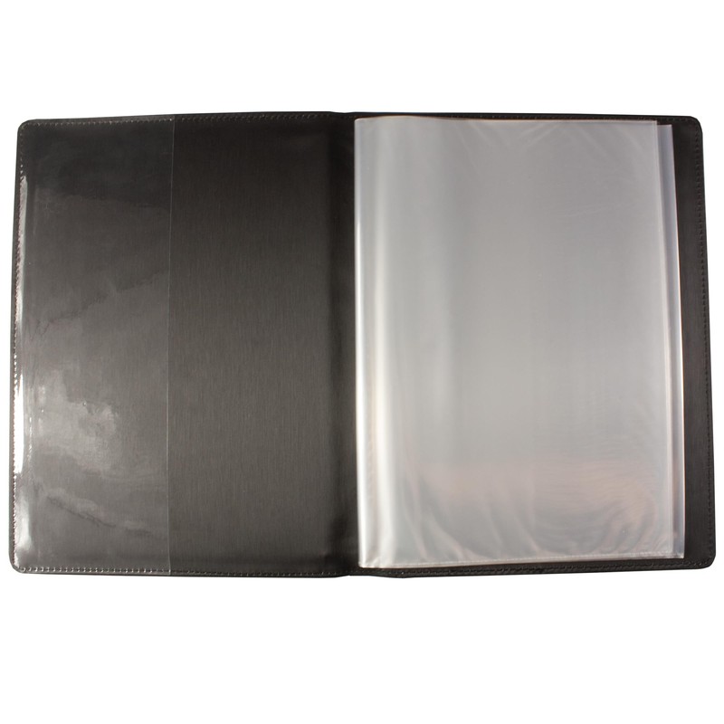 - A strong black padded cover display book is designed for a professional look, allowing for the protection of important documents and long-term storage of photos in a sleek, professional manner