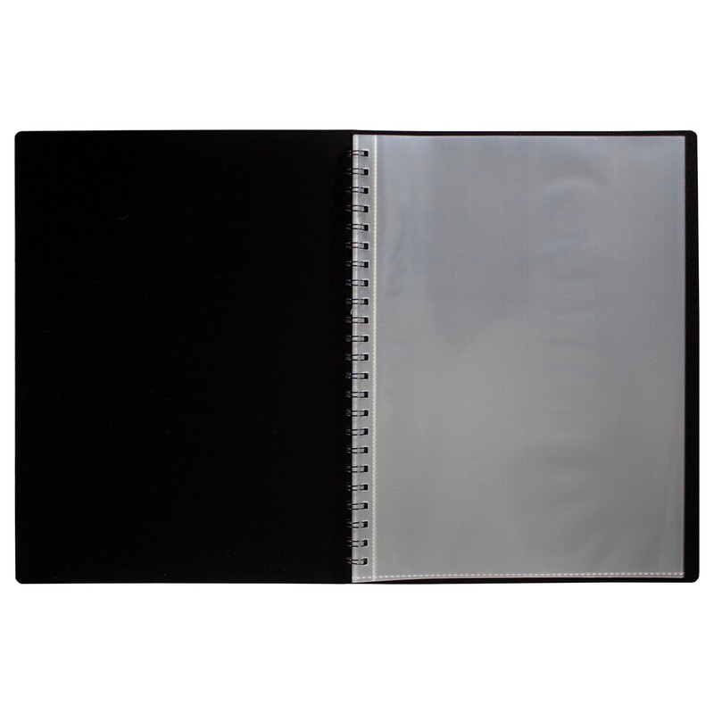 - Strong black 600 micron cover spiral display book with clear 100 micron A5 size sleeve on front cover for personalisation and presentation
