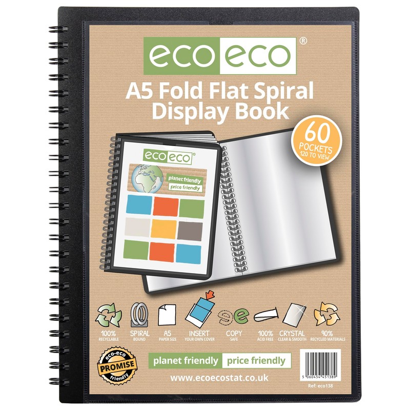 eco-eco A5 50% Recycled 60 Pocket Fold Flat Spiral Bound Display Book, eco138