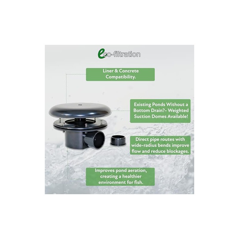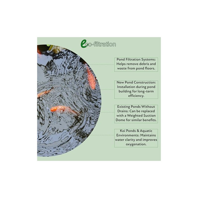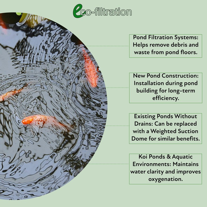 - Ideal for New and Existing Ponds: For ponds without a bottom drain, a Weighted Suction Dome provides similar benefits without the need for reconstruction.