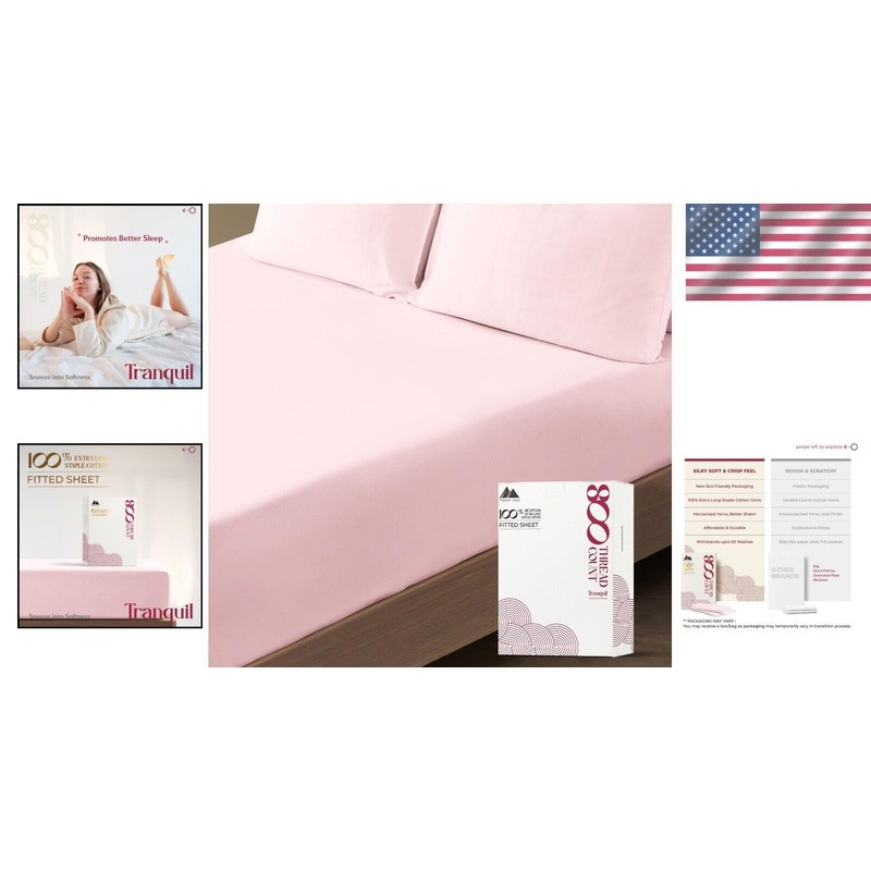 Eco-Friendly 100% Cotton Fitted Sheet - 800 TC, Blush, Perfect for Hot Sleepers