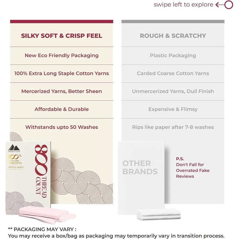 Eco-Friendly 100% Cotton Fitted Sheet - 800 TC