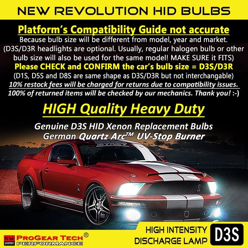- 🚫【Compatibility】fitment guidelines are not absolutely correct. Please note that these replacement bulbs are only suitable for vehicles equipped with D3S or D3R HID xenon headlights (generally, halogen lamps or other headlights will also be used on the same model. Please check your car’s stock bulb or user manual and make sure it is suitable for installation). MAKE SURE IT FITS.