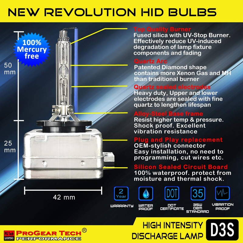 - 【OEM Standard】Our Authentic D3S HID Xenon headlight bulb kit follows OE / OEM standard, fit for Audi, Volkswagen VW, Jeep, Mercedes Benz…, Philips, Osram, Sylvania...'s of 35W 42V working current, so it can perfectly match for any OE / OEM factory’s D3S D3R D3C igniters / ballasts without error.