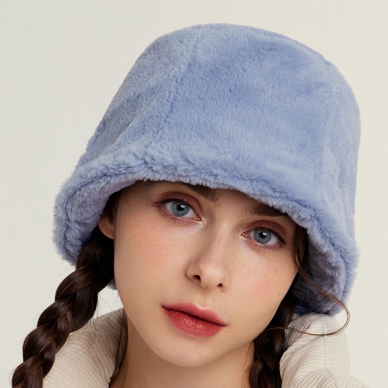 Eco Fur - Sombrero de cubeta de azúcar, Azul, Small-Medium