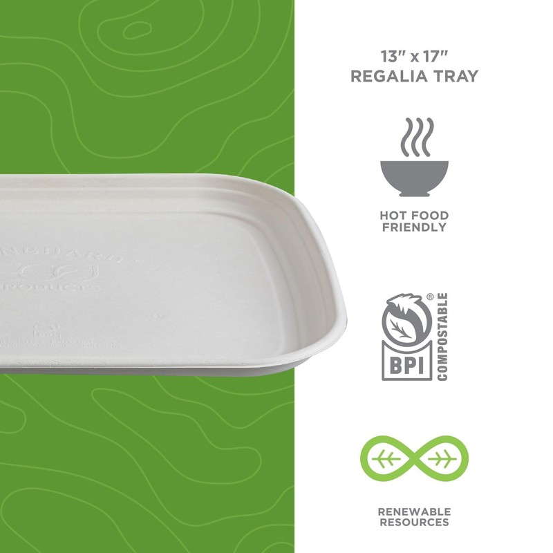 Eco-Products Compostable 13x17in Serving Tray, Case of 100, Regalia Vanguard Platter, Disposable Renewable White Molded Fiber, No PFAS, Lid Available, ASTM Compliant, BPI-Certified