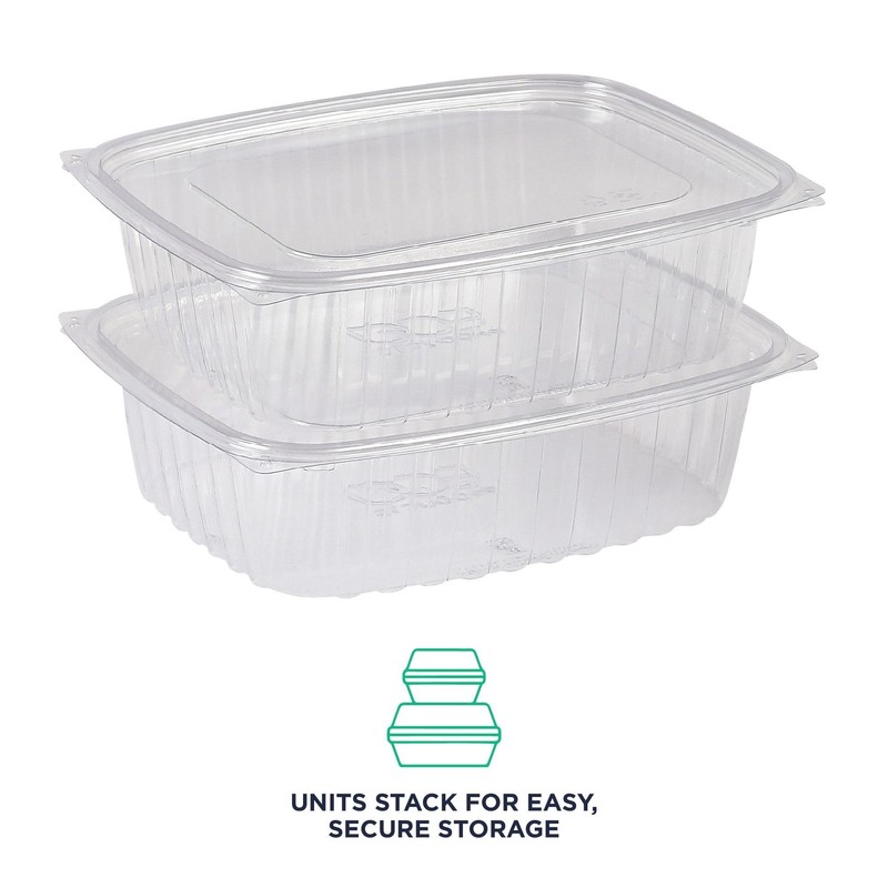 ECO PRODUCTS Compostable 48oz Clear Large Rectangular Deli Containers With Lids, Pack of 50, Meal Prep, Made from PLA Plastic, A Renewable Material Made from Plants, One Lid For All