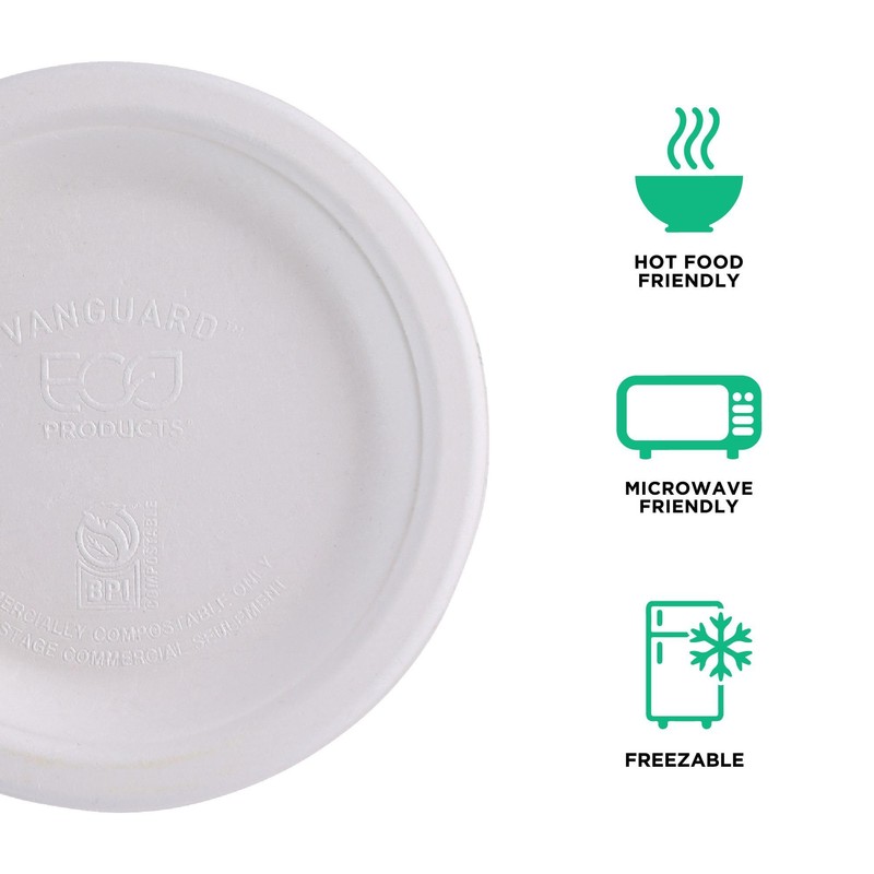 ECO PRODUCTS Vanguard Compostable Disposable Paper Plates, 6" Round Eco-Friendly Plates, BPI-Certified, No-Added PFAS, White, Pack of 50