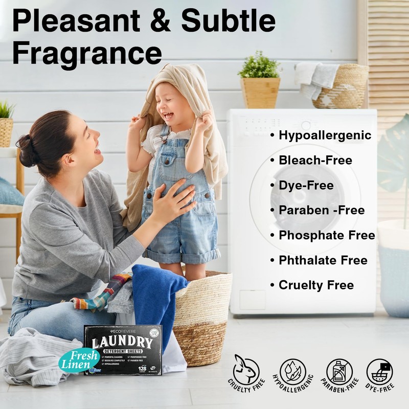 - SKIN-FRIENDLY INGREDIENTS: Our laundry sheets are formulated without harsh chemicals like sulfuric acid, our hypoallergenic laundry detergent sheets are safe for sensitive skin and are bleach-free, dye-free, paraben-free, phosphate-free, phthalate-free, and certified cruelty-free.