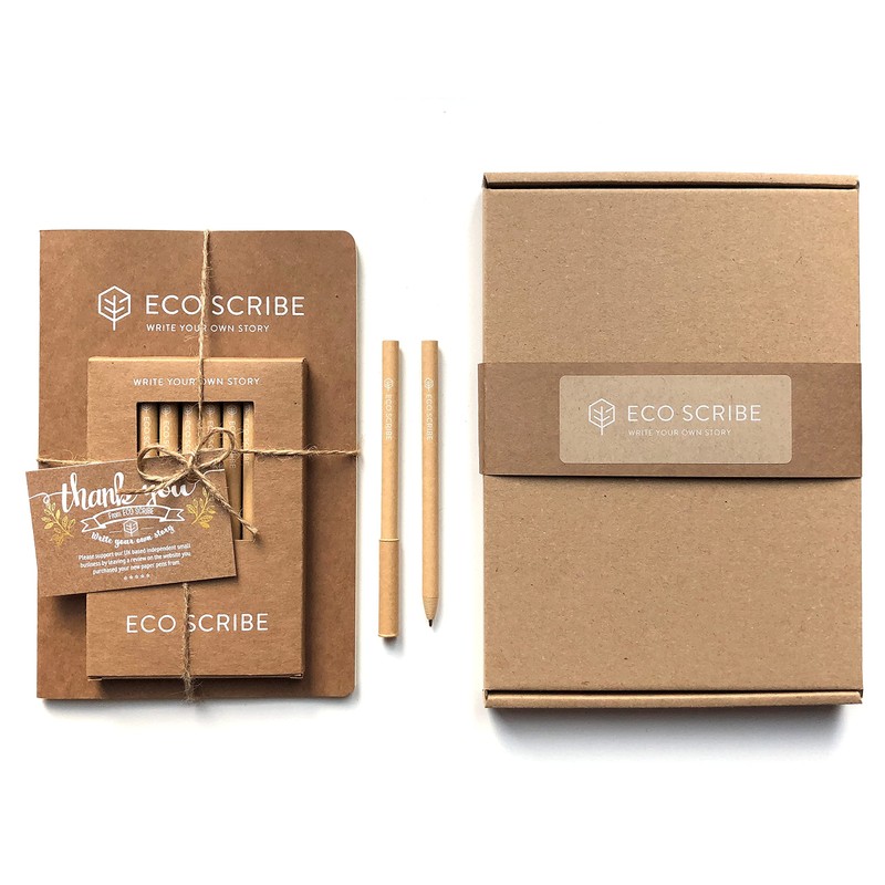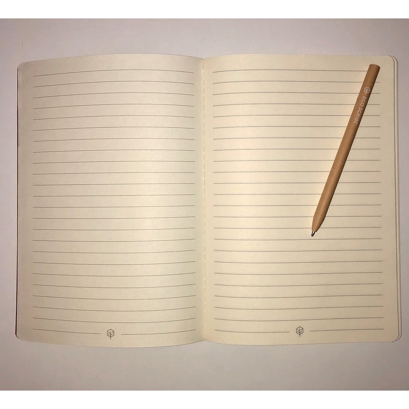 ECO SCRIBE x1 A5 Notebook/Journal & Pack of 10 Recycled Paper Pens, Eco Friendly Stationery Gift Set, 80 Lined Pages, Environmentally Friendly Present, 100% Plastic Free, 100% Recyclable