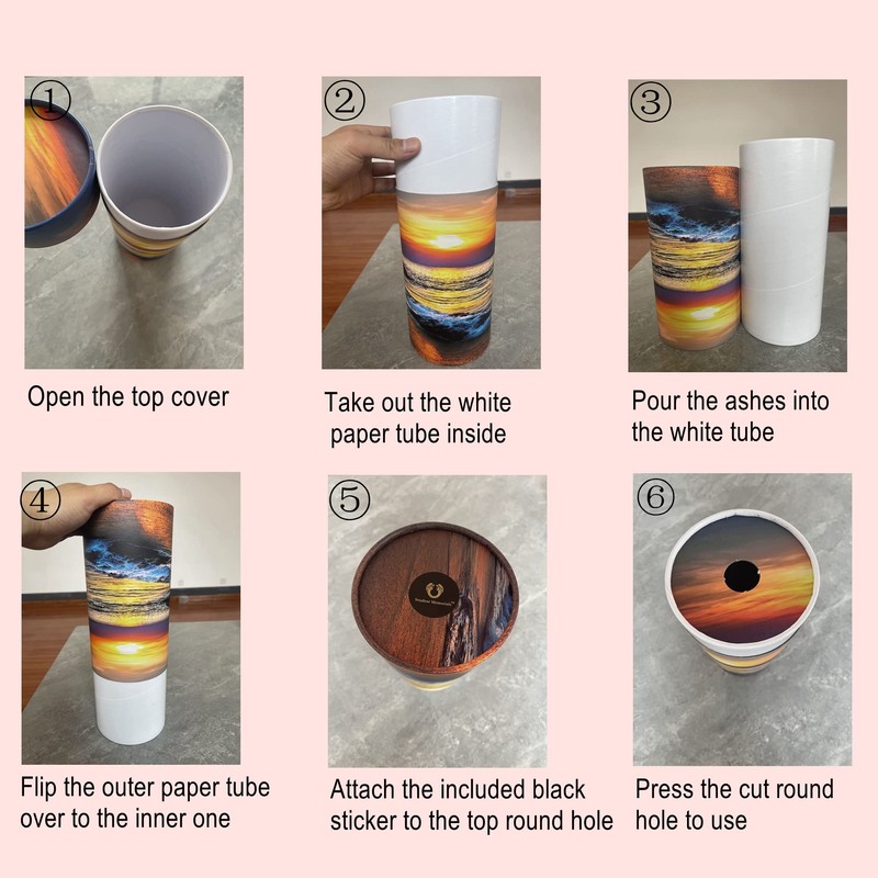 - EASY ASSEMBLY This paper urn can be easily assembled. Please remember to attach the sticker to cover the air hole to prevent spills.