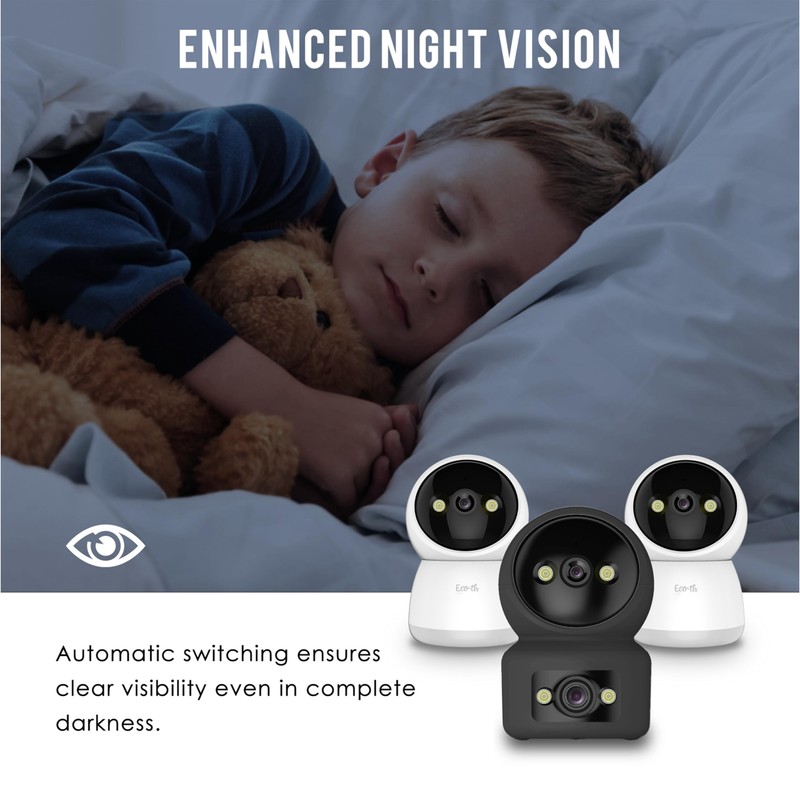 ECO-TH 3-Pack (1 Dual Lens + 2 Single Lens) Indoor Pan/Tilt Home Smart Security Camera, 1080p HD Dome Camera with Speaker,2.4GHz Night Vision,Motion Detection Indoor Security Camera for Baby Monitor